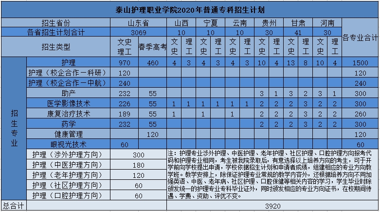 2021年普通大专(高职)招生计划表