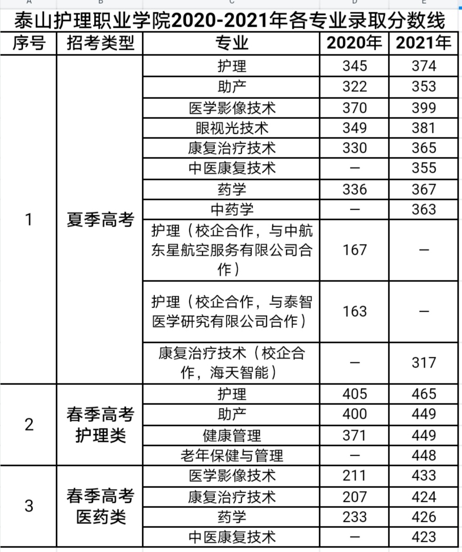 2020-2021年夏季高考、春季高考各专业录取分数线